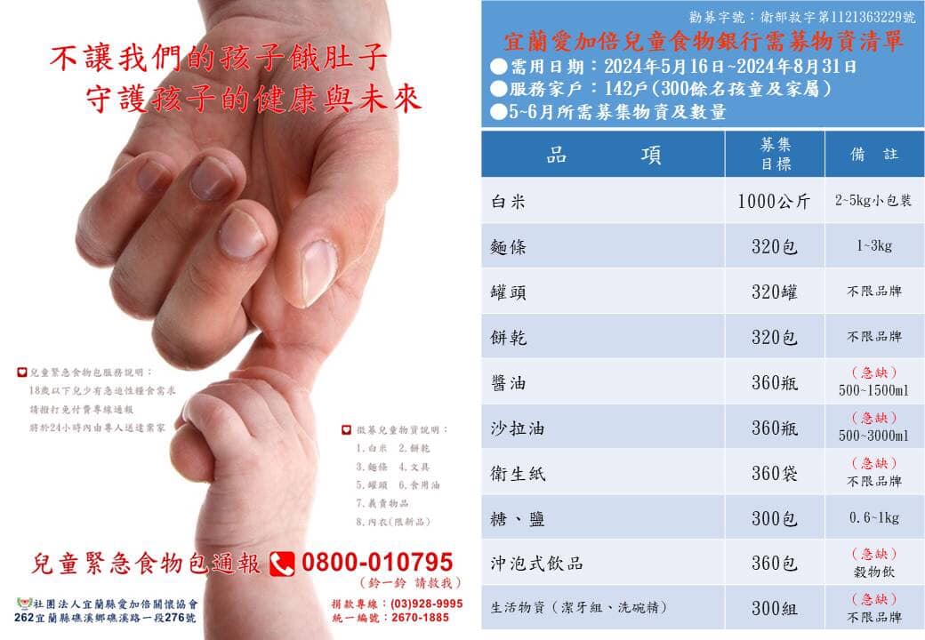 宜蘭愛加倍兒童食物銀行協會官網:https://agape-yilan.weebly.com/