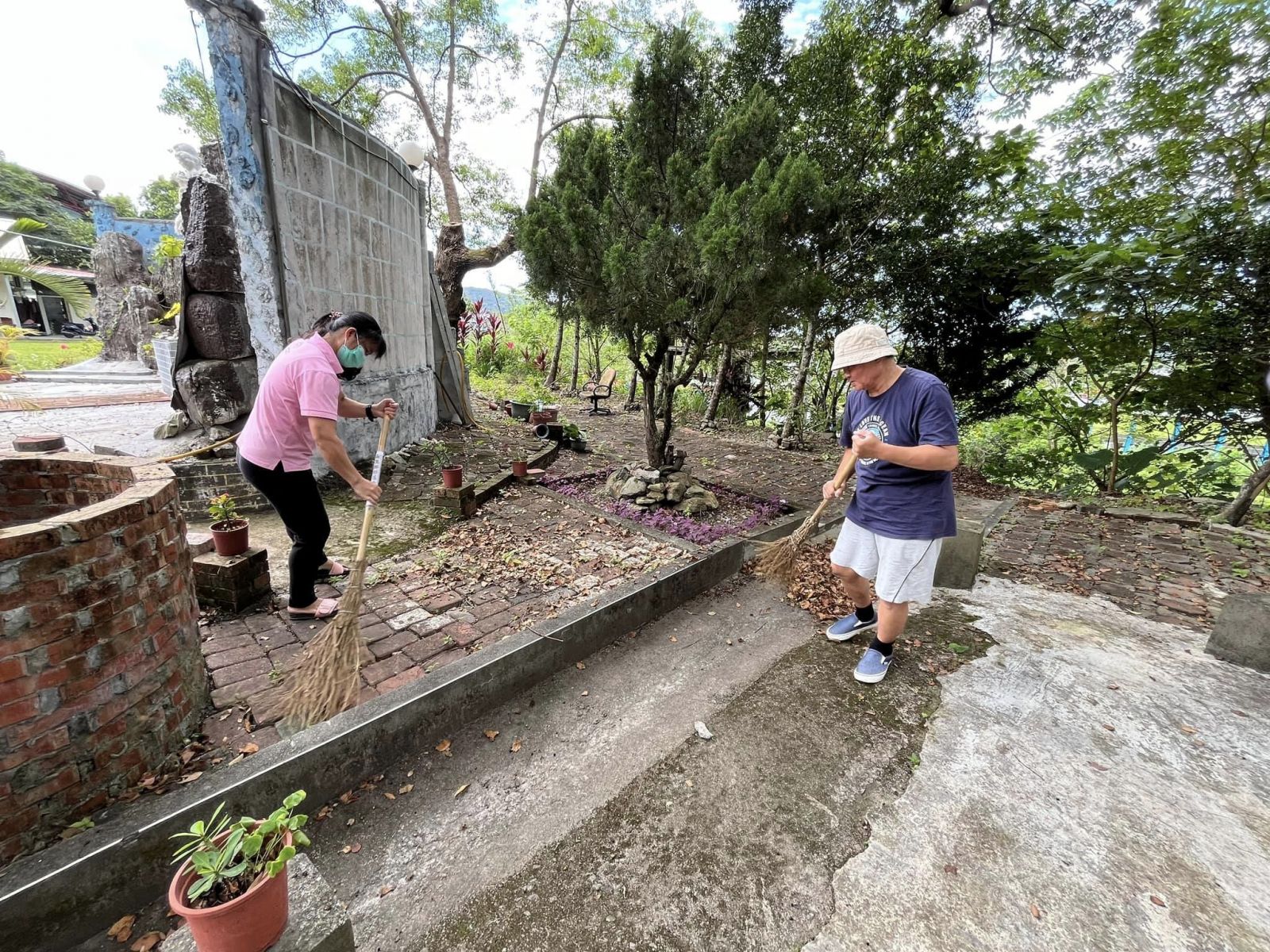 由於另一車的社工還沒到,我倆很認份的開始撒掃庭院落葉一切都是那麼的美好開心