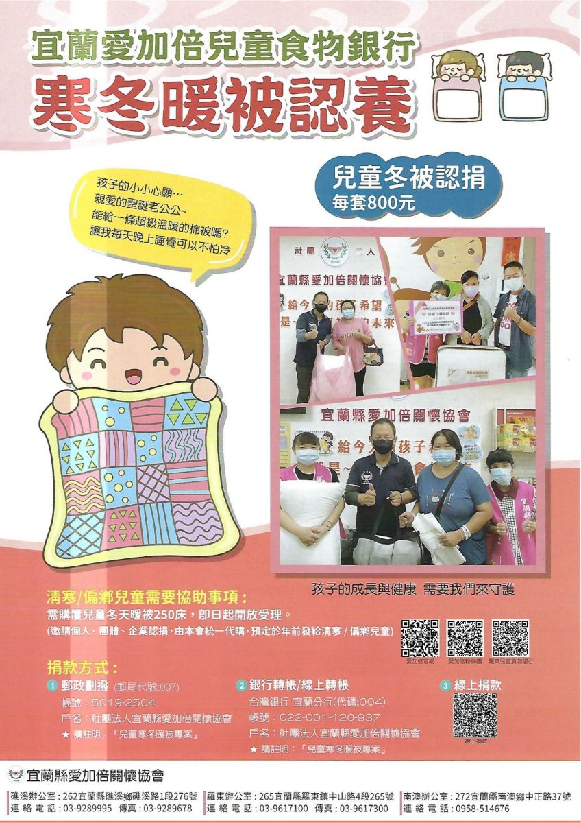 戶名:社團法人宜蘭縣愛加倍關懷協會