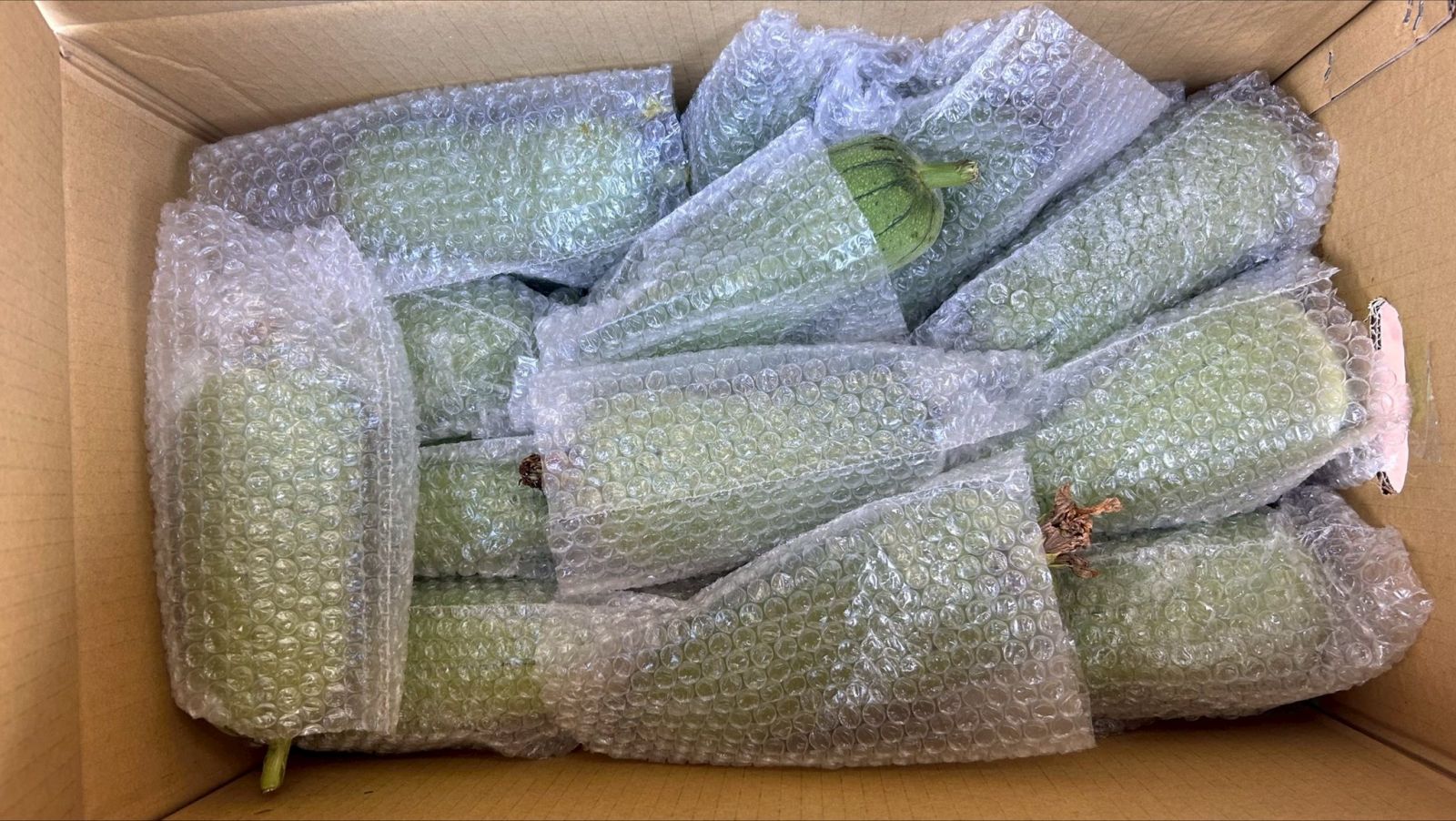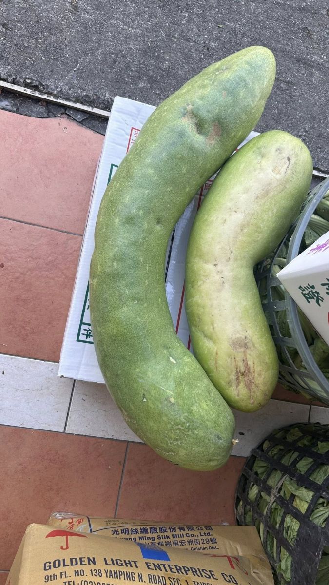 冬瓜2條、韭菜4大把、皇宮菜3箱、絲瓜5箱、芥蘭菜2簍