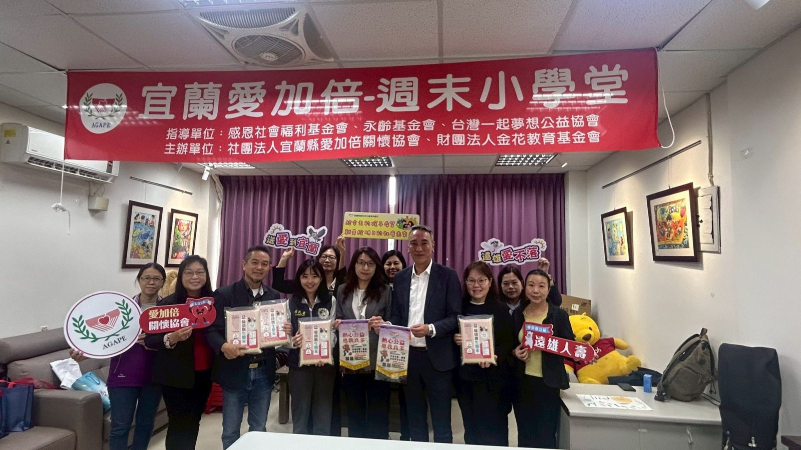 今日特別由遠雄人壽二位張協理連袂帶隊來到宜蘭愛加倍兒童食物銀行,也邀請移民署北區工作大隊簡主任及專員一同,見證捐贈儀式及共同分享貓頭鷹生態米,讓這份對生態、生命及與家的關愛與守護,能夠持續擴散與延續