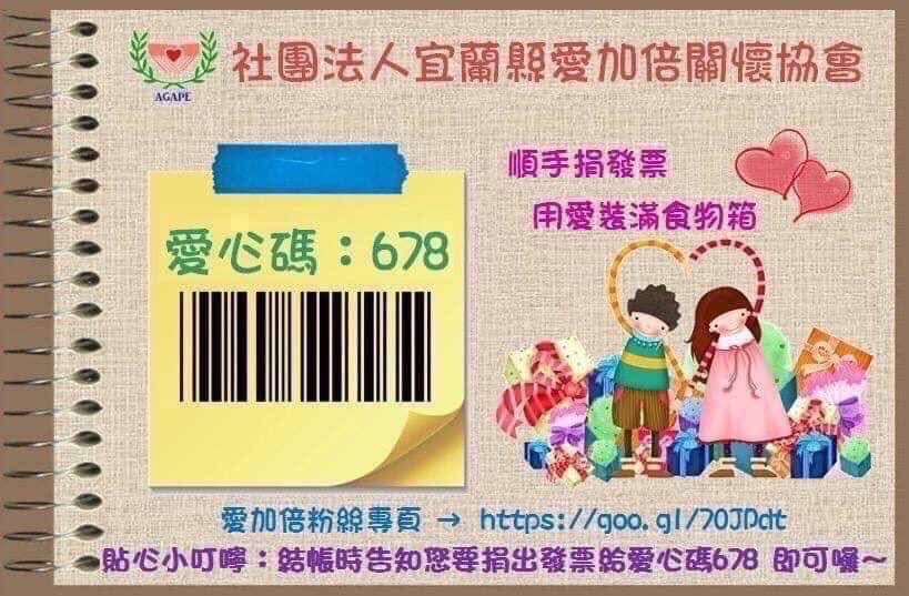 小額線上捐款: https://www.yilanagape.org/donate.html