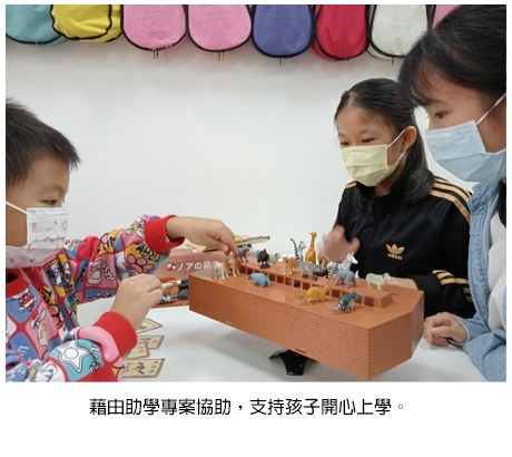 1.經濟扶助:透過「兒少助學認養計畫」提供偏鄉弱勢孩童每個月的經濟補助,協助其減輕上學、三餐或其他基本生活負擔。