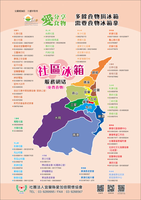 愛加倍「宜蘭社區食物冰箱分享計畫」歡迎社區賣場、商店、 個人加入分享行列,相關訊息可洽(03)928-9995 宜蘭縣愛加倍關懷協會。