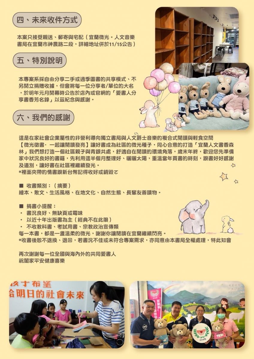 宜蘭微光 人文爵士音樂空間及獨立書店,徵書方向及準備建議指引